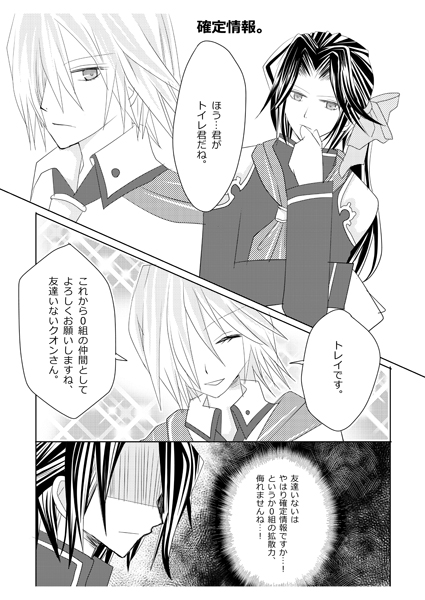offline 2012/12/16 ハピバありがとうございました~! 12/16 STAROCEAN>Treasure 誕生日プレゼントにいただいたイラストを2点追加しました! ありがとうございましたー! 幾つになっても祝っていただけるのは嬉しいですね! そういえば、1月のインテスペースいただけました。 13.1.6 COMIC CITY大阪92 3号館 O43a Estrelas にて参加しますー。 FF零式とSO4の本持っていきます! ゼノギアス・ゼノサーガの本も持ち込むかもですが多分机の上には置かないです…。 新しいモノは…年賀ポストカード配布と、 FF零式93←クオンの漫画無配ペーパー(こちらは不確定ですが)かな…? 年賀状はSO4と零式と…あとできたらTOX2を作りたいなぁ…って思ってます。 TOX2に予想以上にハマってしまってあれこれ描くモノ手つかず状態で… ガイアス様が可愛すぎてつらいです… 主に右側…/// チョコパフェ好きとか甘口カレーとか機械音痴とか… TOX1ではそこまで萌えなかったんですけどこの可愛さはどうしたら…。 実はディアラバ発売日に買ってたんですが、 TOX2発売してから中断してずっとそっちばかりで 全然進んでません… カナトしかコンプしてない…\(^o^)/ [0回]