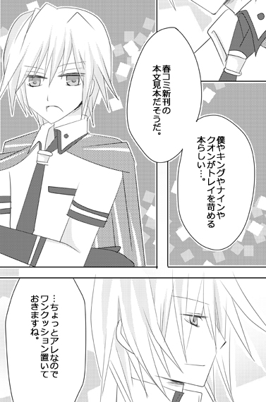 offline 2012/08/19 9/2FFオンリー参加情報 9/2 FFオンリーイベント(東京流通センター) お57 Estrelas にて参加します。 トレイ受なのかトレイいじりなのかトレイいじめなのか よくわからないうっすいコピー本が2冊あります\(^o^)/ どっちもA3中心でトレイ受雑食ギャグです。 トレイいじり本が新刊で、あとHARUコミで出したトレイいじめ本も持っていきます。 シャーペン描きでよろしければスケブもOKです~。 以下新刊既刊情報です。 自家通販も取り扱っていますのでお気軽にどうぞー。 NEW ・TREIJIRI! ¥200 FF零式A3中心トレイ受…というよりトレイいじり本です。 A3+K3、93、23。 表紙裏表紙 本文見本的なモノ。 ・ドS<エース>来たれり ¥200 HARUコミで出したFF零式A3中心トレイ受…というよりトレイいじめ本です。 A3+クオン×トレイ、K3、93。 本文見本です。 [0回]PR