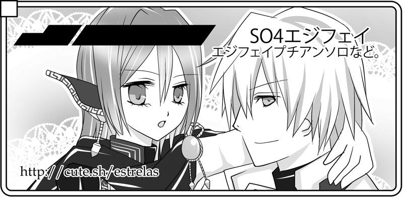 offline 2014/06/22 6/29AAAオンリーおしながき&本文サンプル 6/29トライエースオンリーイベント参加情報です。カルナス04 Estrelasにて参加します。エジフェイ(+フェイズ受)本3種類あります。あと、当日無配でエジフェイ+エジイルペーパーがありますのでこちらもお気軽にお声かけくださいませ!自家通販も常時取り扱っていますのでこちらもどうぞー! おしながき 【ペーパー(ラフ)】こんな感じのなんちゃってエジイル漫画もどき(ラフから1コマ増えてます)と某乙女ゲコスのエジフェイです。 【カモンエジフェイ】昨夏コミに出したエジフェイプチアンソロジーです。告知サイトはこちら。 <sample> 【MOUMOCHIMASEN】 【やっぱりエッチさんはエッジ】 あとポスターこんな感じ 以上、よろしくお願いいたします~! [1回]PR